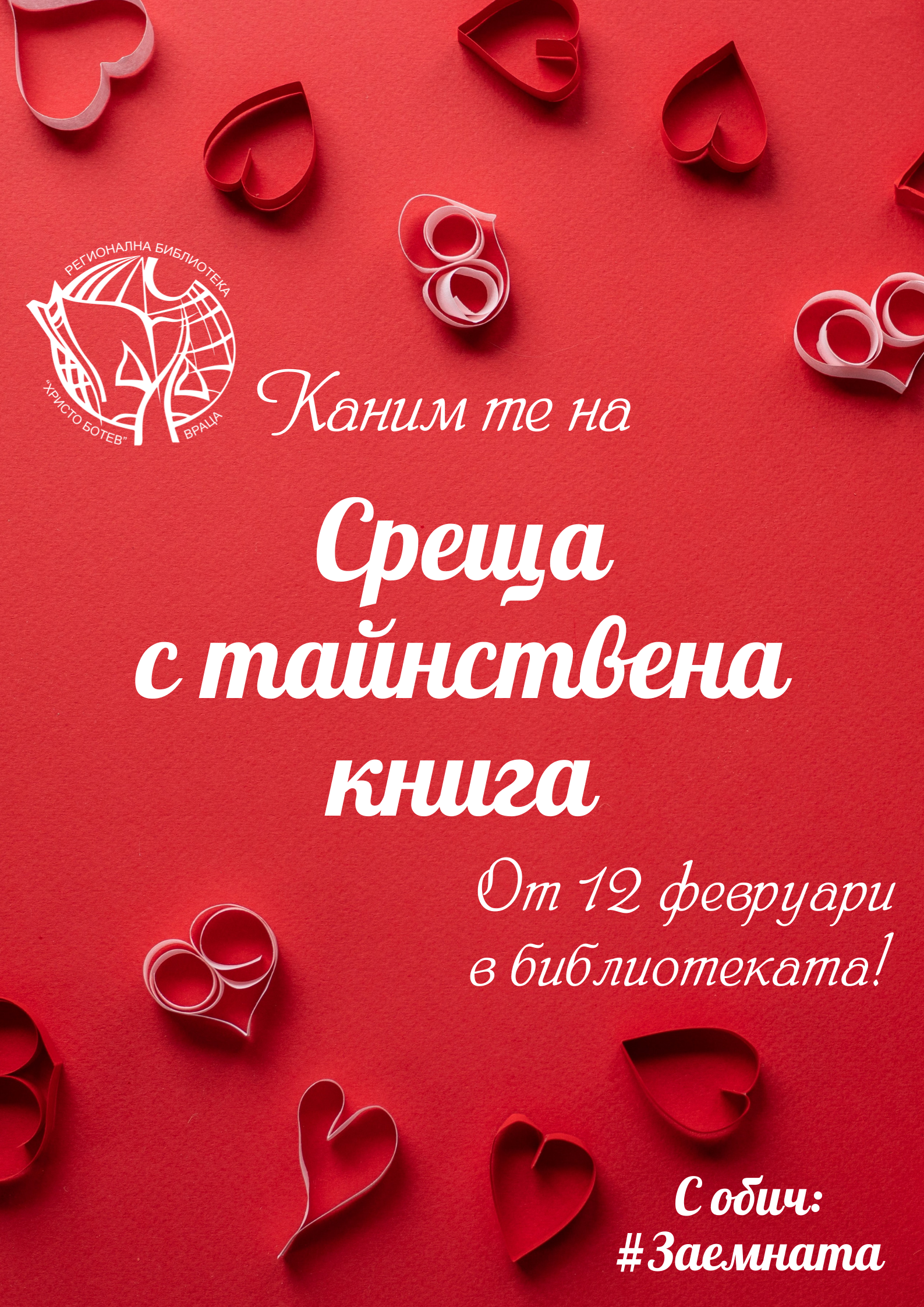 На 12 февруари (понеделник), дни преди празника на влюбените, библиотекарите ще зарадват посетителите си с книжни изненади, които ще могат да разгадаят едва когато се приберат у дома.