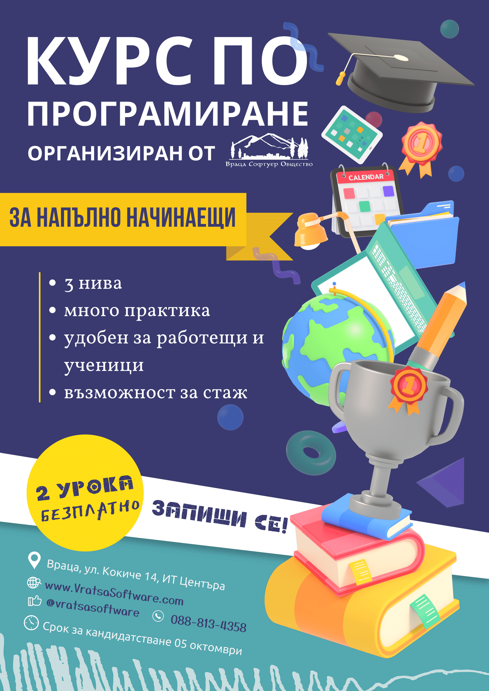 Кандидатстването ще бъде отворено до 05 октомври. Желаещите могат да се регистрират тук https://vratsasoftware.com/application/create/1, има и възможност за стипендия!