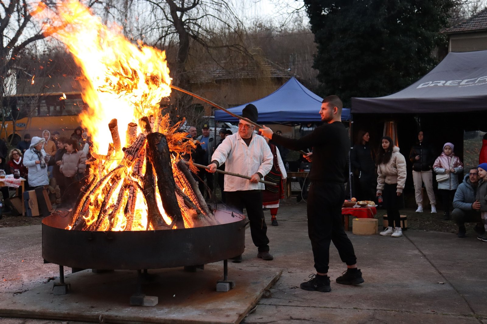 По традиция на площада в парк „Турлашка махала” десетки граждани се събраха, за да се насладят на обичаите и да се хванат на хорото около пречистващия огън.