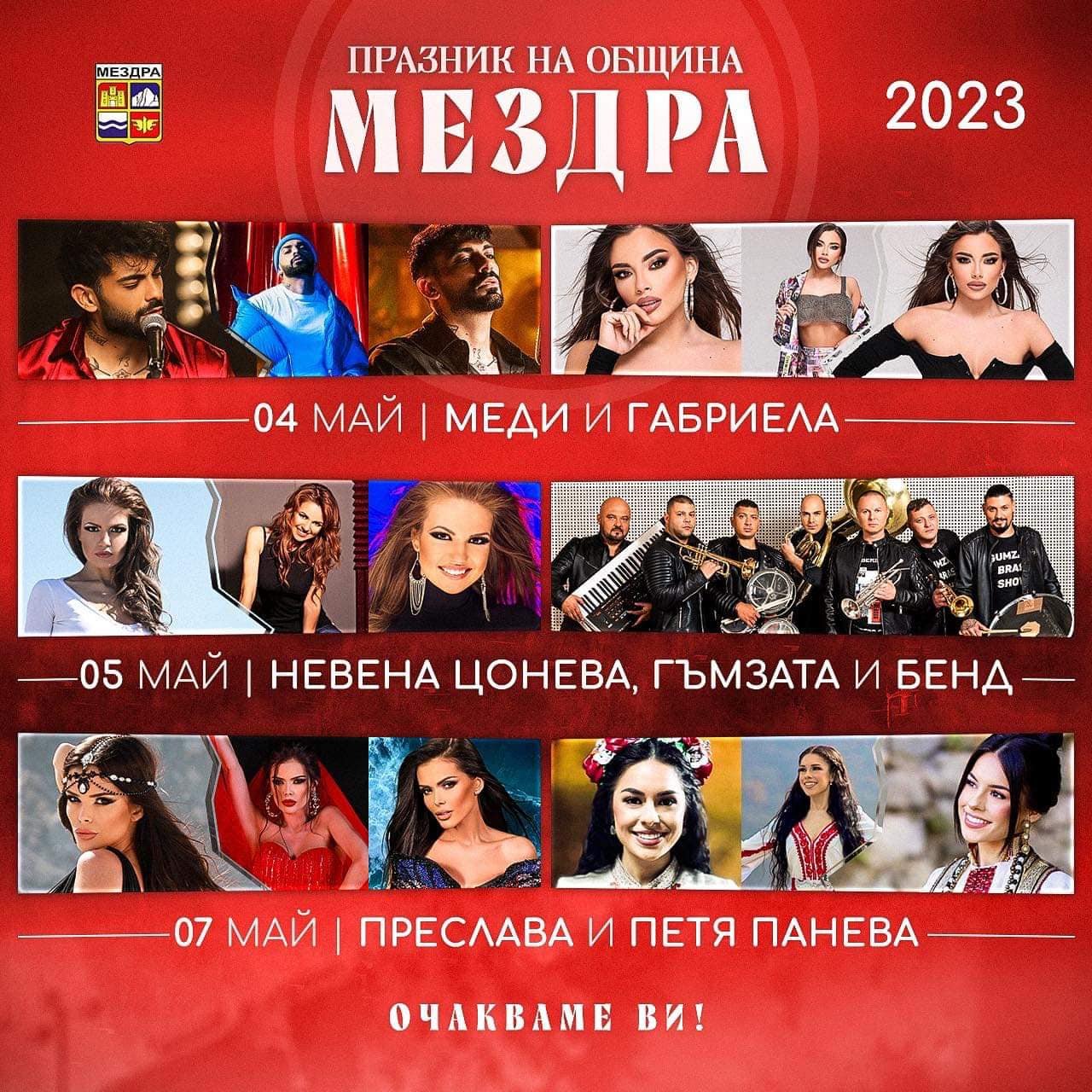От 4 до 7 май 2023 г. гр. Мездра е домакин на поредица от фестивали и концертни прояви:
