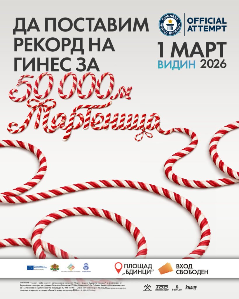 На 1 март град Видин ще отбележи празника на Баба Марта с мащабна инициатива, насочена към поставяне на нов световен рекорд на Гинес за най дълга мартеница. Амбицията е да бъде изработена впечатляваща бяло червена нишка с дължина 50 километра, символизираща здраве, надежда и настъпващата пролет.