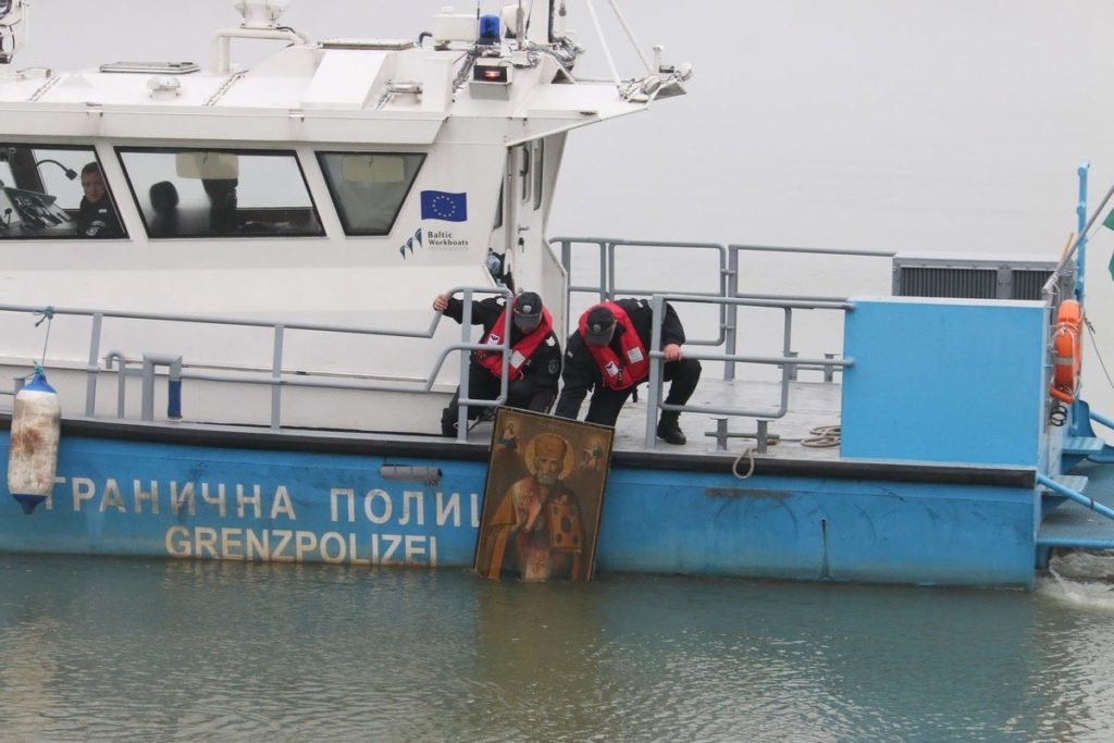Пак по установена традиция, от катер на Гранична полиция в реката бе потопена трикратно икона с образа на светеца.