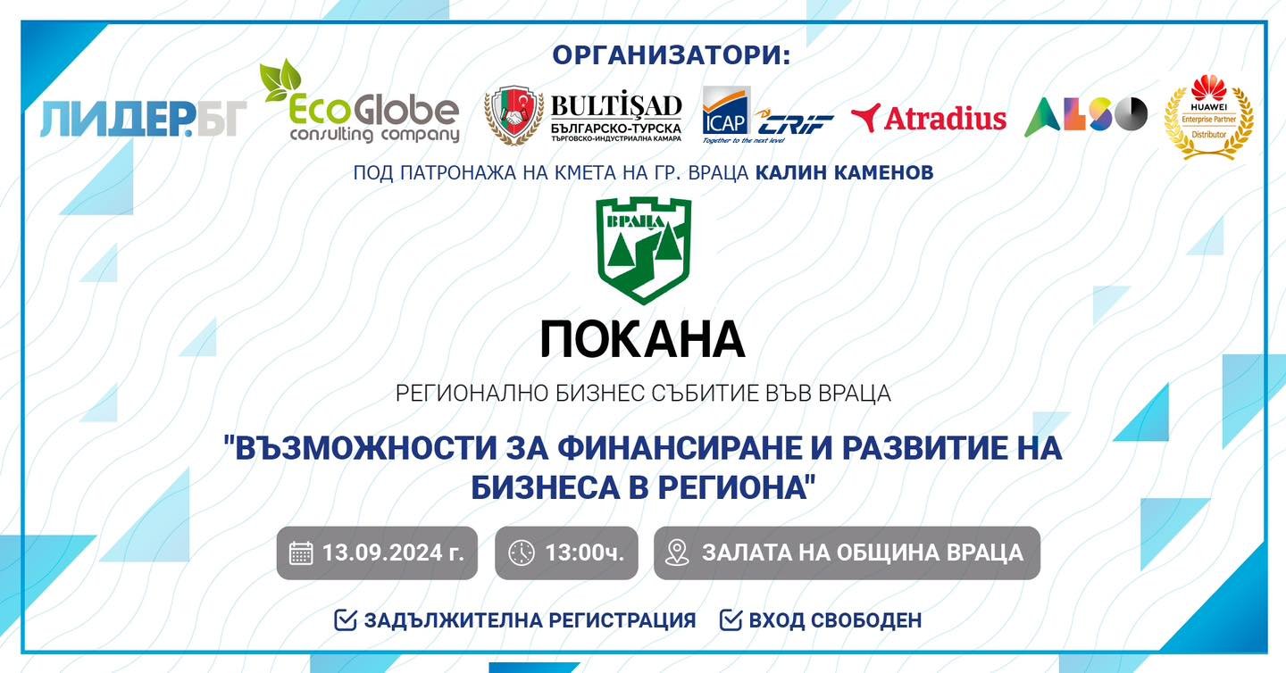 Събитието „Възможности за финансиране и развитие на бизнеса в региона“ ще се проведе на 13 септември от 13:00 часа в Градска концертна зала.