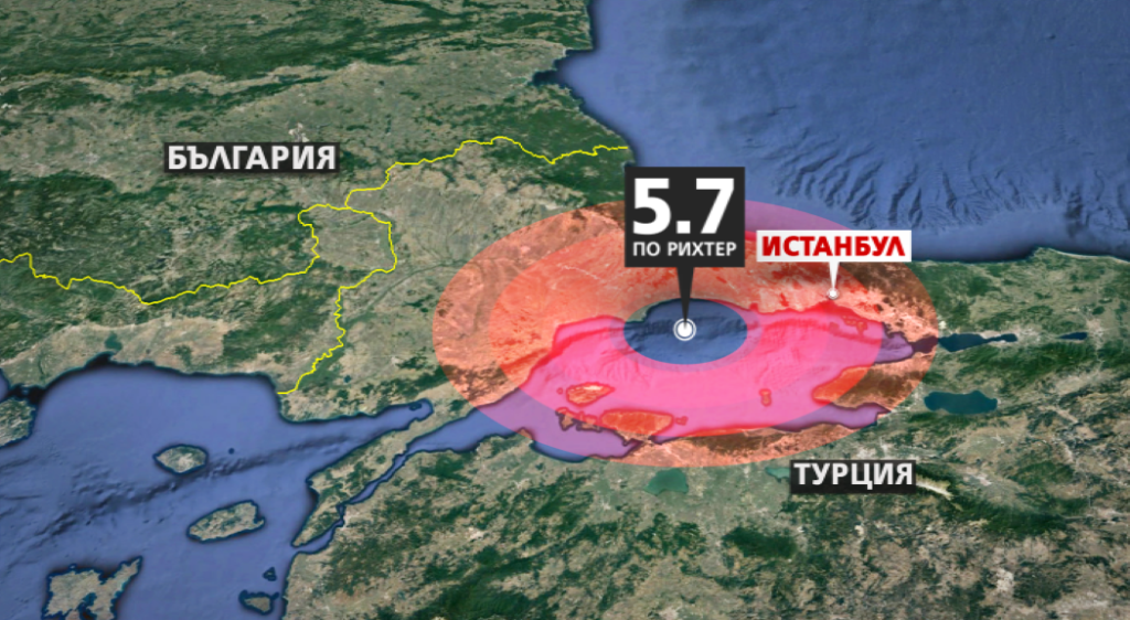 От обсерваторията Кандилли съобщиха, че земетресението от 5,7 по Рихтер е било с епицентър в Мраморно море на 14 километра дълбочина, на 75 километра от Истанбул.