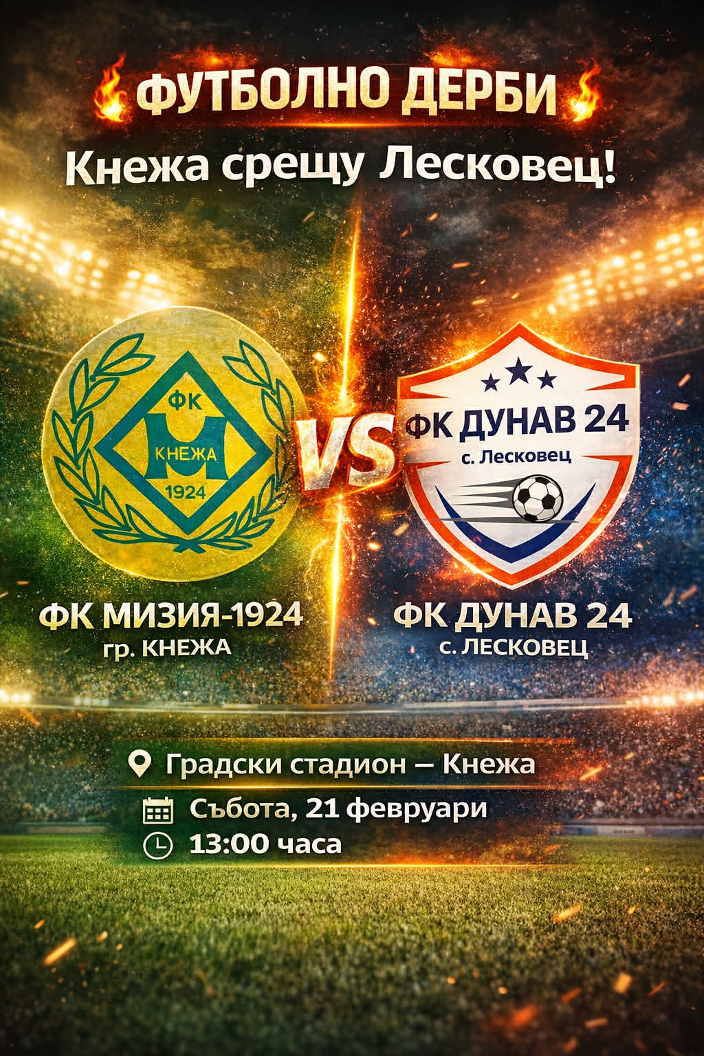 Лидерът в Б окръжна група зона Враца ФК Дунав 24 ще премери сили с ФК Мизия 1924 в приятелска среща, която ще се изиграе в Кнежа. Проверката е насрочена за 21 февруари от 13:00 часа на Градския стадион.