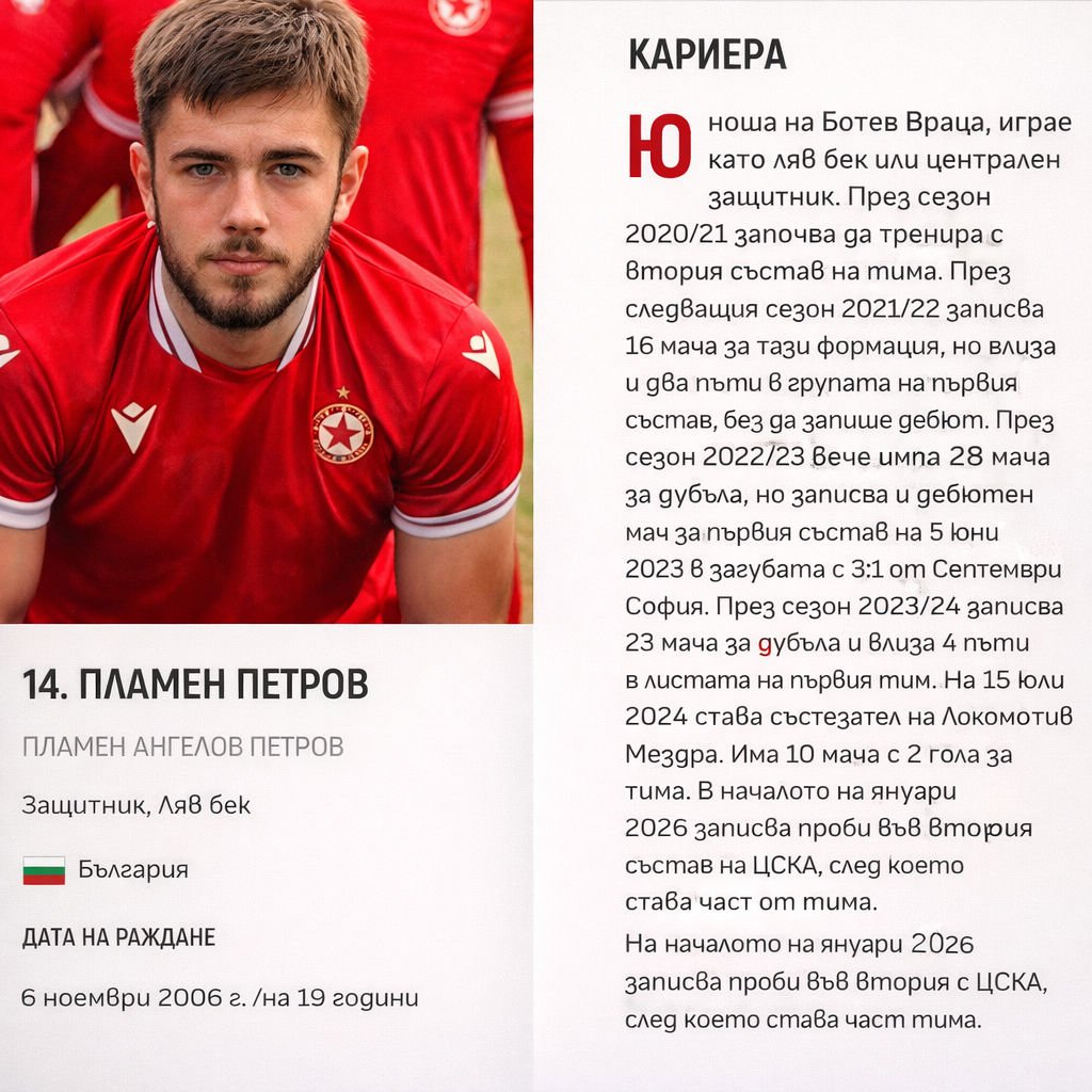 Поредна крачка напред в своята футболна кариера направи младият талант от Враца Пламен Петров, който вече е част от състава на ЦСКА.