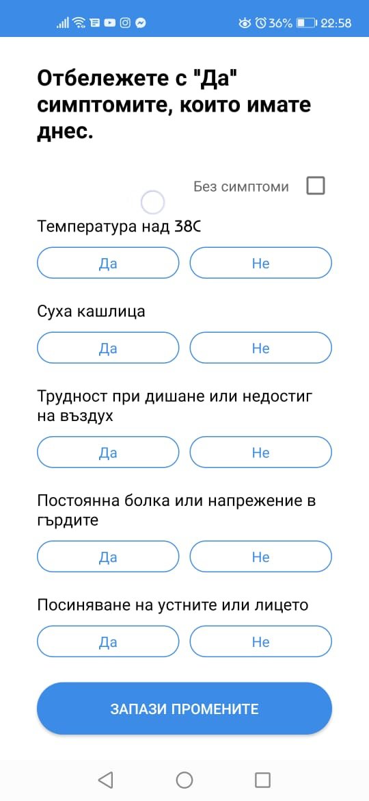 ViruSafe приема данните от потребителите и чрез тях генерира карта с горещи точки, където има граждани с проявени симптоми на COVID-19.