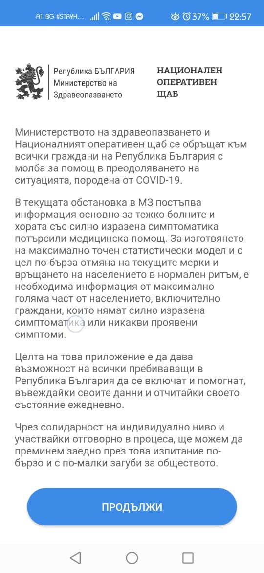 Целта на приложението е да осигури по-добра видимост върху разпространението на заразата. Това от своя страна може допълнително да помогне на здравните институции за по-добро планиране и идентифициране на локации с потенциално заразени хора.