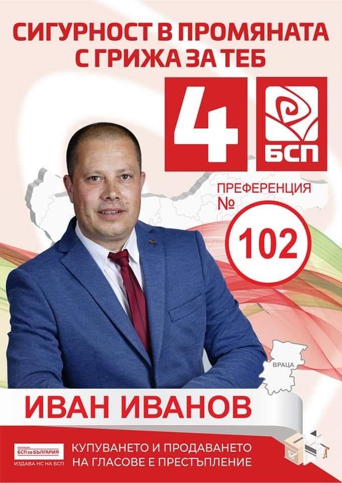 Гласувайте за Иван Иванов с №4 и преференция 102 машинно и в бюлетината!