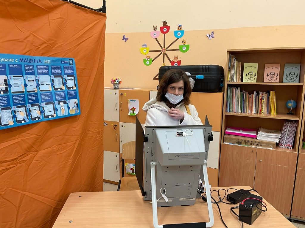 „Гласувах за модерна България, в която времето, уменията и знанието на хората са истински ресурс, който не се хаби. Гласувах за България, в която уважаваме различията си и вървим заедно напред. „, тя след като даде своя вот.