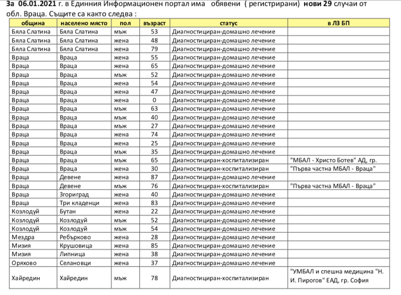 Става дума за трима мъже на 65, 76 и 78 години от град Враца, село Девене и село Хайредин. Те са настанени за лечение в МБАЛ „Христо Ботев“ – Враца, Първа частна МБАЛ-Враца и УМБАЛ „Пирогов“ – София.
