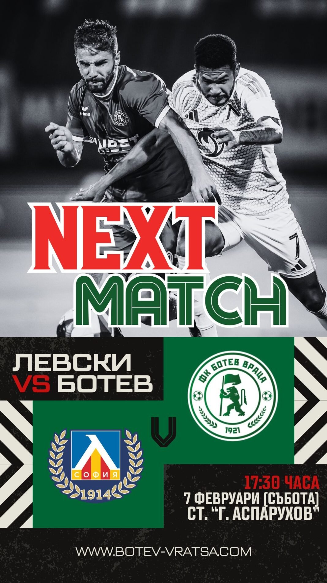 Срещата е насрочена за 7 февруари, събота, от 17:30 часа на стадион Стадион „Георги Аспарухов“.