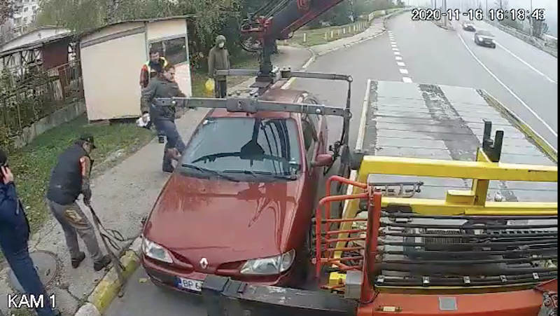 Вижте видеото, което показва как мъжът брани с юмруци и викове правото си да нарушава закона и своето “Рено” и как на следващия ден, умишлено чупи бариерата и нахлува в пешеходната зона, преди да подпали колата си и да шокира минувачи и ученици.