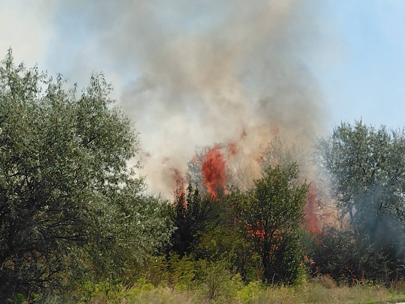 Причината за пожара са запалени сухи треви и храсти на стената на язовир