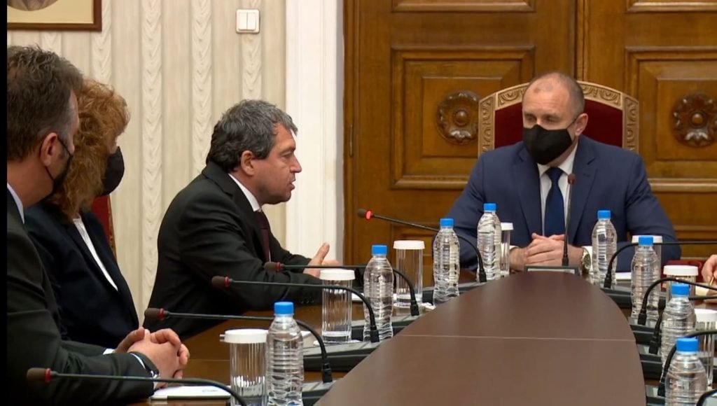 При държавния глава са Филип Станев, Тошко Йорданов и Виктория Василева от партията на Слави Трифонов.