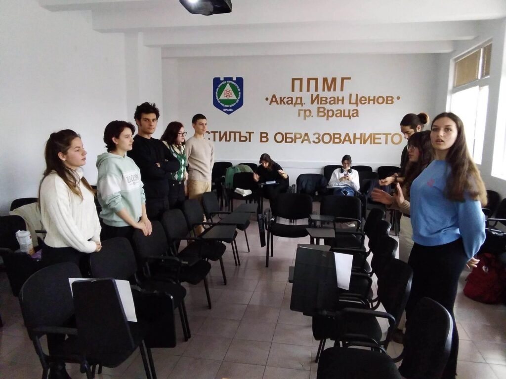 В рамките на един астрономически час, 21 младши посланици и приятели от Профилирана природо-математическа гимназия “Акад. Иван Ценов”, гр. Враца, дебатираха върху четири от ценностите: Свобода, Равенство, Правова държава и Толерантност.