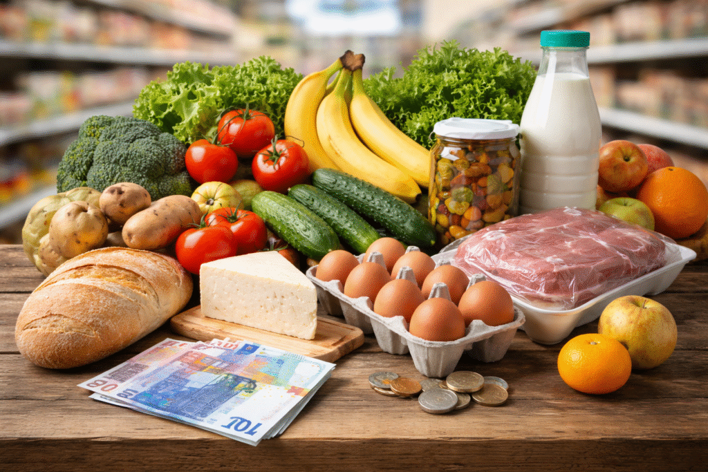 Според информацията цените на основните хранителни продукти остават сравнително стабилни през февруари, като на седмична база се наблюдава спад от около 1 евро, но на годишна база увеличението достига близо 5 евро. Най-осезаемо поскъпване се отчита при плодовете и зеленчуците, докато част от основните хранителни стоки запазват ценовите си нива.