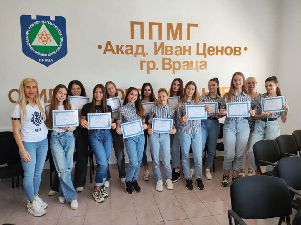 На тържествена церемония директорът на ППМГ „Акад. Иван Ценов“ – Враца връчи грамоти за отлично представяне на ученичките от мажоретния състав и фолклорния ансамбъл към училището.