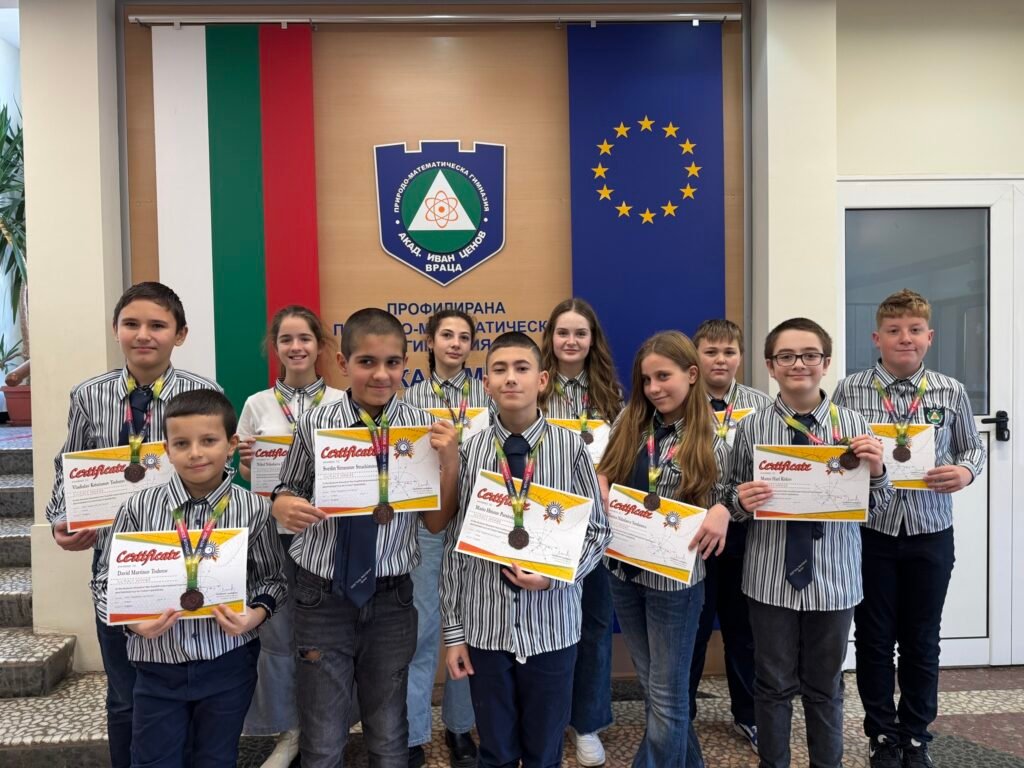 Младите математически таланти от ППМГ „Акад. Иван Ценов“ – Враца отново донесоха куп отличия от есенния кръг на Международния турнир „Математика без граници“. Учениците от 5 до 10 клас завоюваха общо 4 златни, 5 сребърни и 10 бронзови медали.
