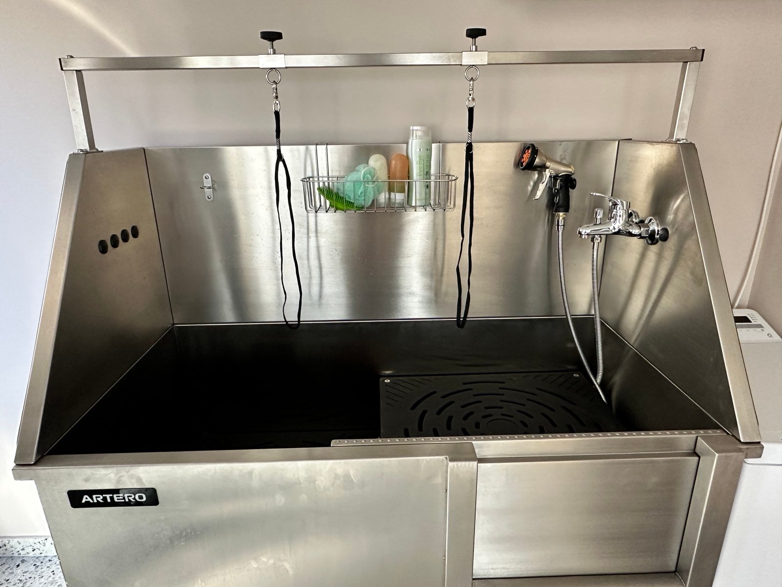 - Къпане с висококачествени продукти: Салонът използва хипоалергенни и натурални шампоани, подходящи дори за чувствителна кожа.