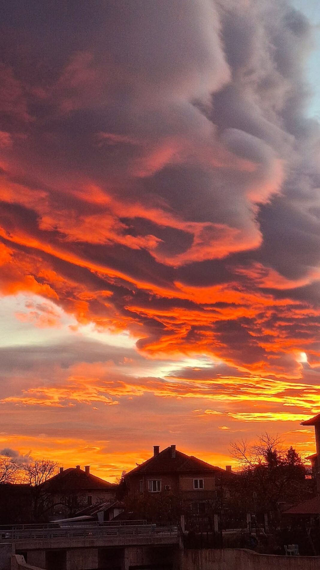 Берковица отново ни напомни колко красива може да бъде природата, когато реши да превърне небето в истинска картина. Впечатляващата гледка, уловена от Наталия Димитрова, озари града с ярки оранжеви, златни и пурпурни отблясъци, превръщайки обикновения ден в незабравим спектакъл.