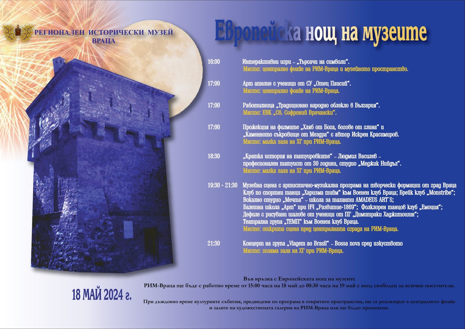 Музеи и галерии от 25 области и около 45 населени места в страната ще посрещат посетители със свободен вход на 18 май по случай 20-ото издание на „Европейската нощ на музеите“.