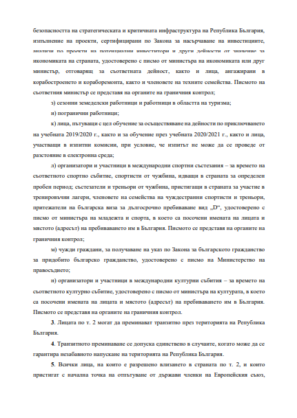 3. Лицата по т. 2 могат да преминават транзитно през територията на Република България.