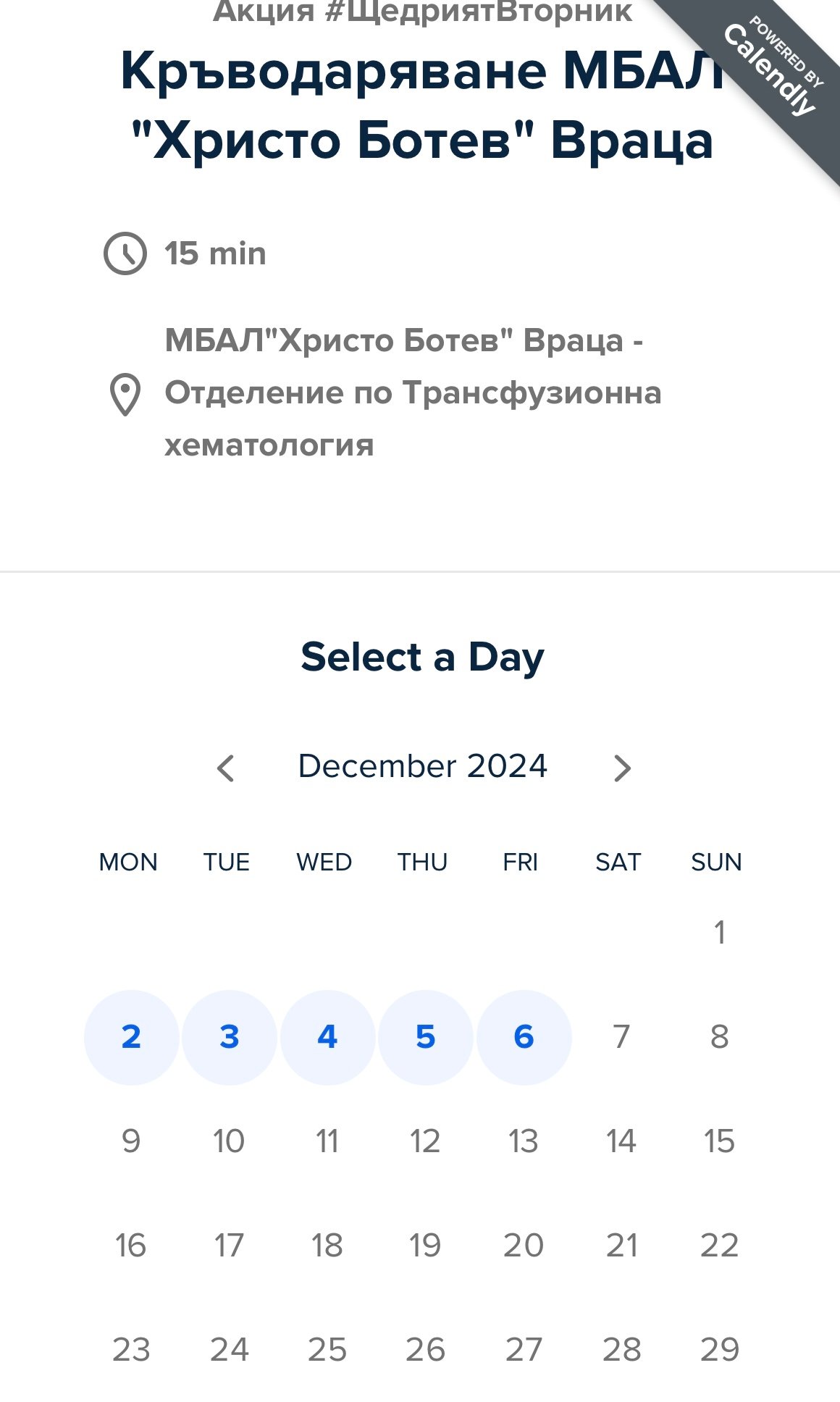 Болницата, която ще участва в Кръводаряването е МБАЛ“Христо Ботев“ – Отделение по трансфузионна хематология;