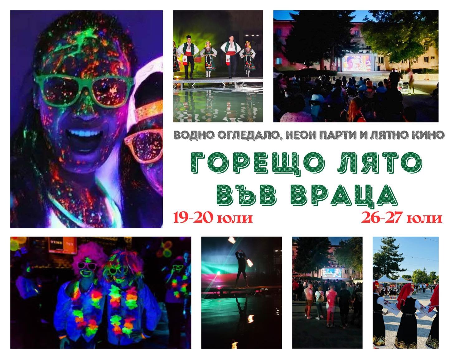 Кино под звездите, Neon party и тематични вечери на водното огледало във Враца