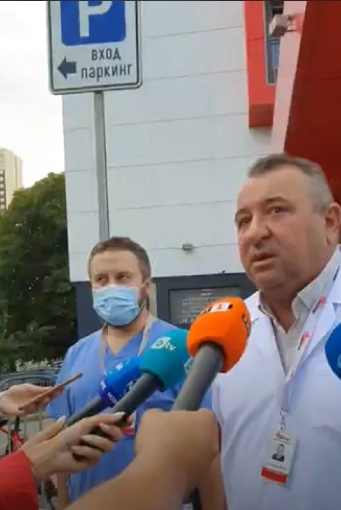 „Възрастният мъж, който се оказа и наш колега, е с политравма, черепно-мозъчна травма, травма на гръден кош и с фрактура на таза. През тази нощ са му направени две операции. Той е в тежко състояние, към момента е интубиран и е в реанимация, с опасност за живота“, това каза на брифинг директорът на „Пирогов“ д-р Валентин Димитров.