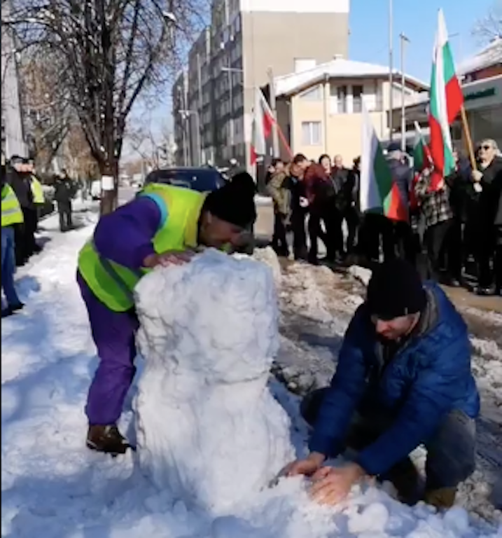 Те направиха снежен човек, символизиращ ръководната фигура на управлението на града.