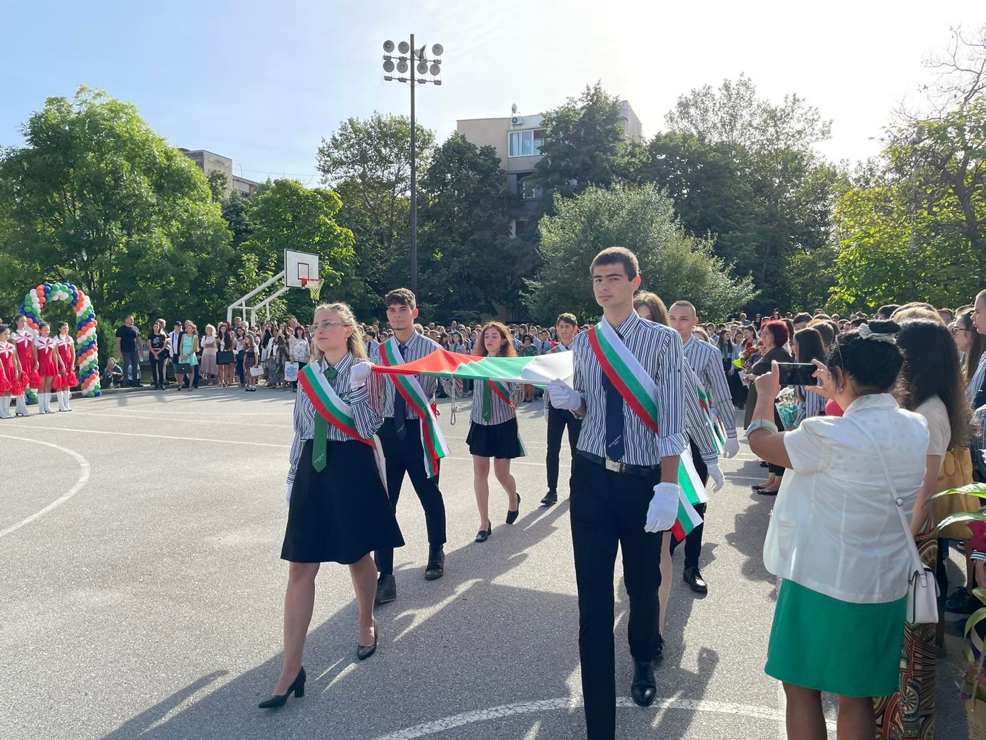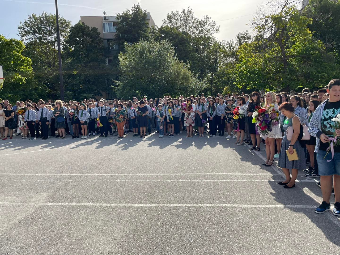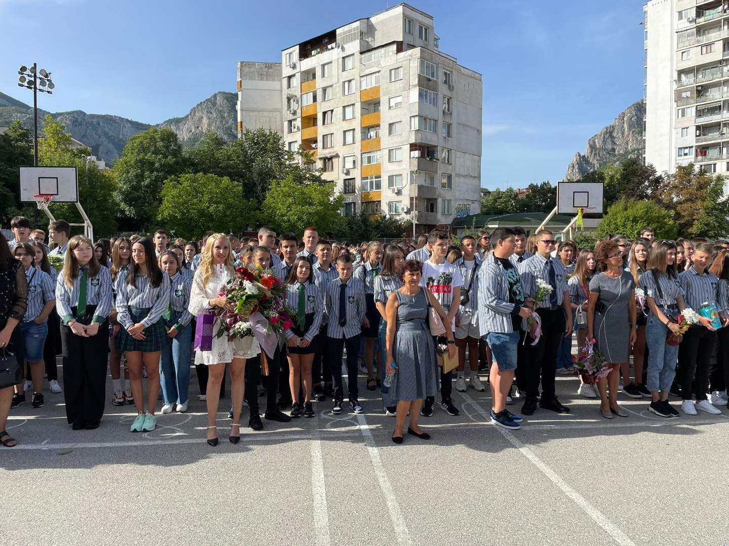В двора на една от най-успешните гимназии в града се събраха ученици от пети до 12 клас, учители, родители и гости.