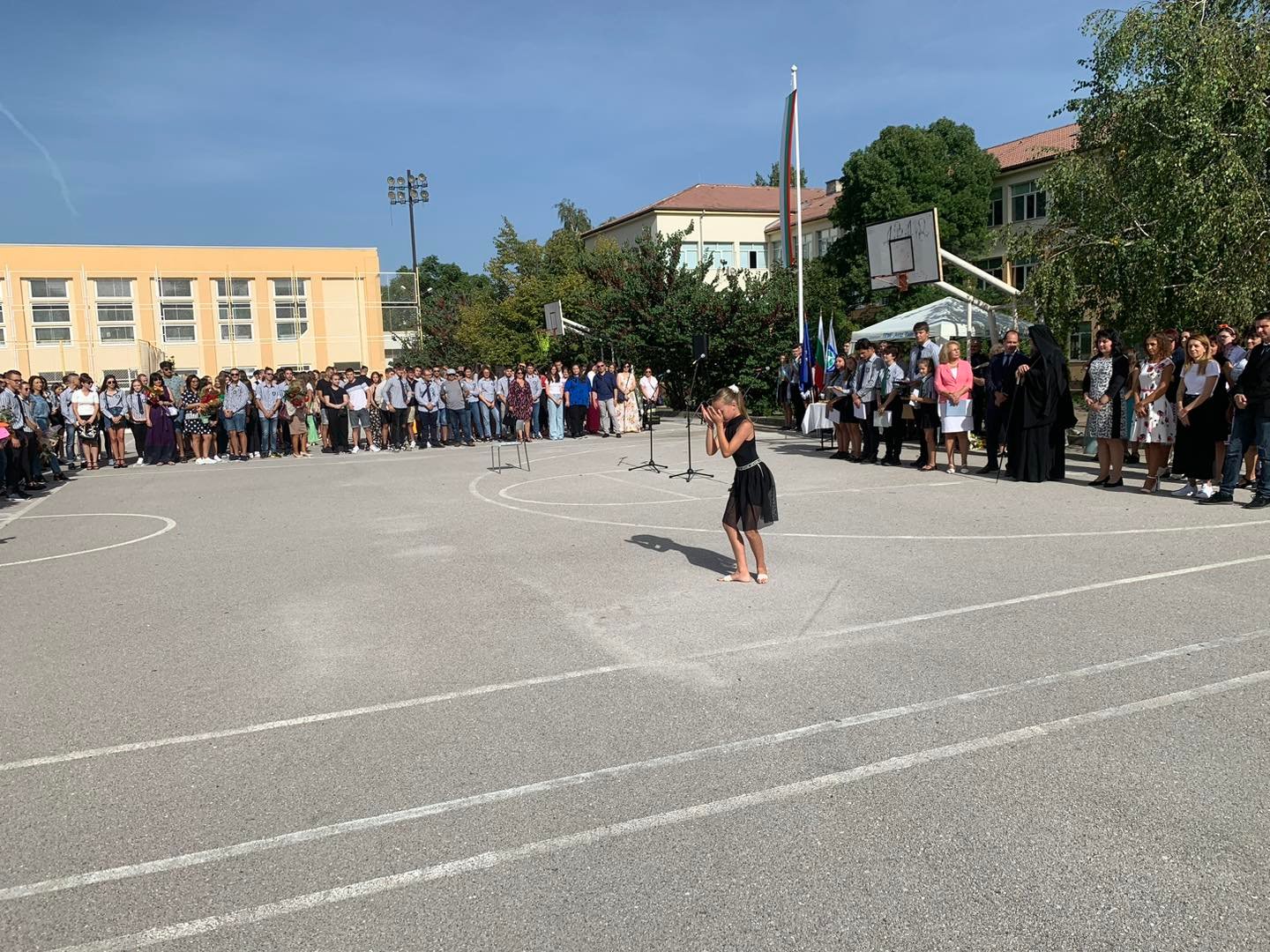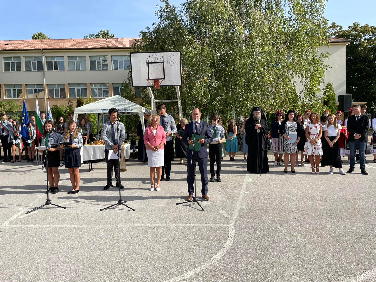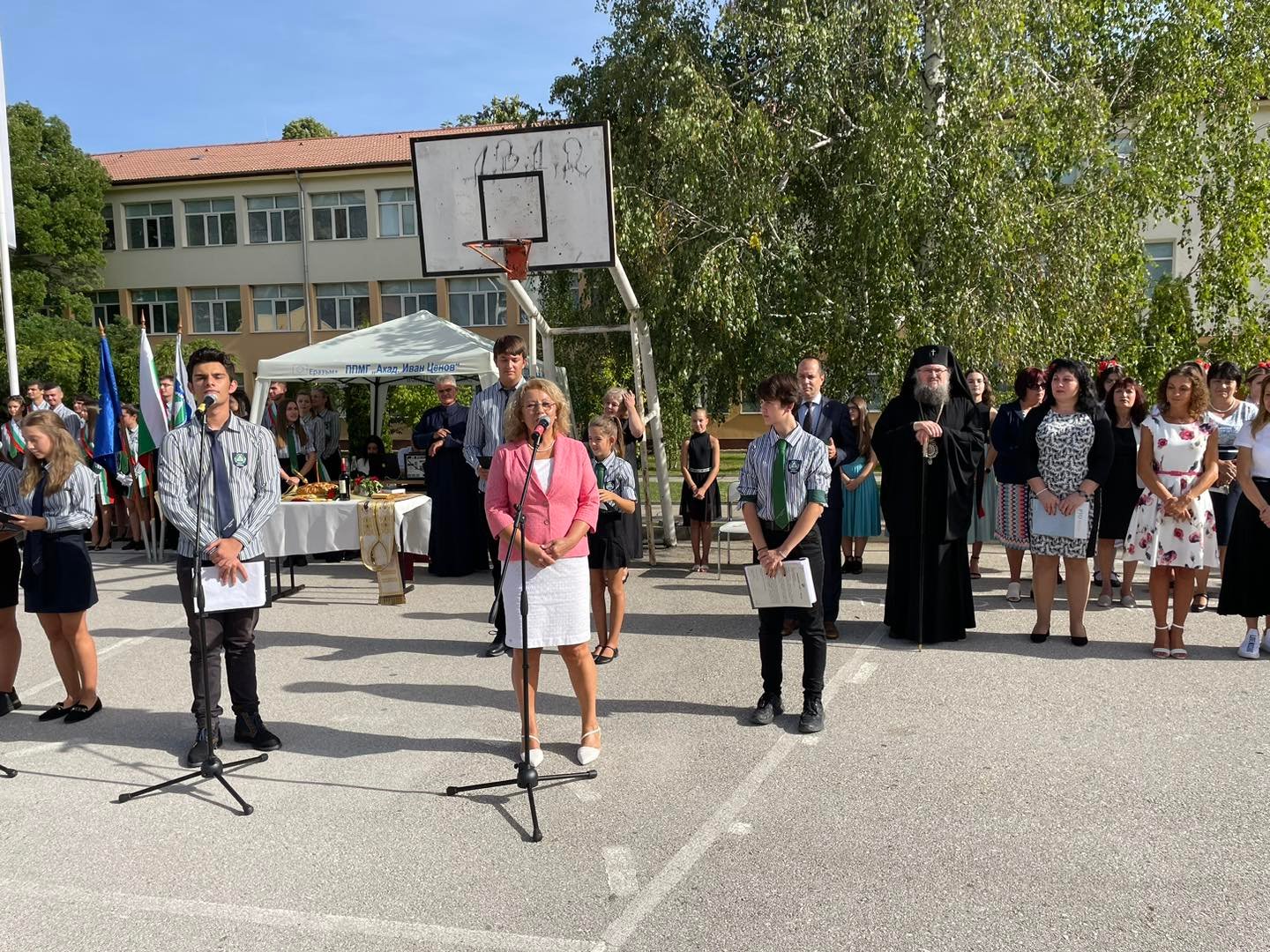В двора на една от най-успешните гимназии в града се събраха ученици от пети до 12 клас, учители, родители и гости.