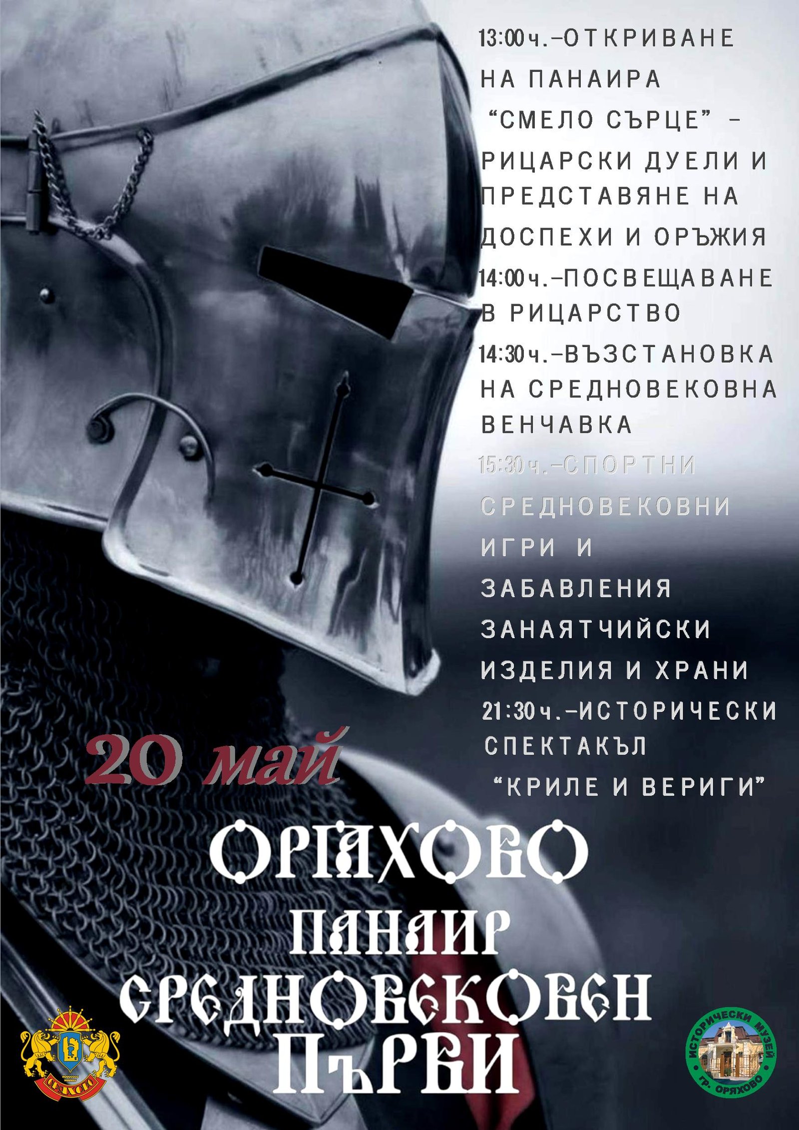 Амбициозното начинание ще плени жителите и гостите на Оряхово с рицарските двубои и съревнования на „Проект Св. Лазар“ – град Пловдив и „Сребротрън“ – град Велико Търново и ритуалът „Посвещаване в рицарство“.