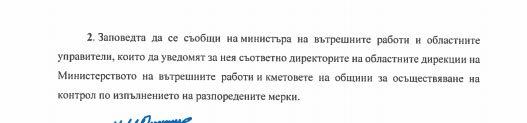 Заповедта е следствие от среща, проведена по-рано днес, между министър-председателя и членове на правителството с Националния оперативен щаб. В рамките на срещата бяха дискутирани противоепидемичните мерки във връзка с разпространението на COVID-19.