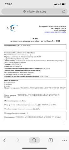 Предмет на настоящата обществена поръчка са строително-монтажни работи (СМР) в АГО отделение в сградата на МБАЛ „Христо Ботев„ АД на адрес гр. Враца, бул.Втори юни № 66.