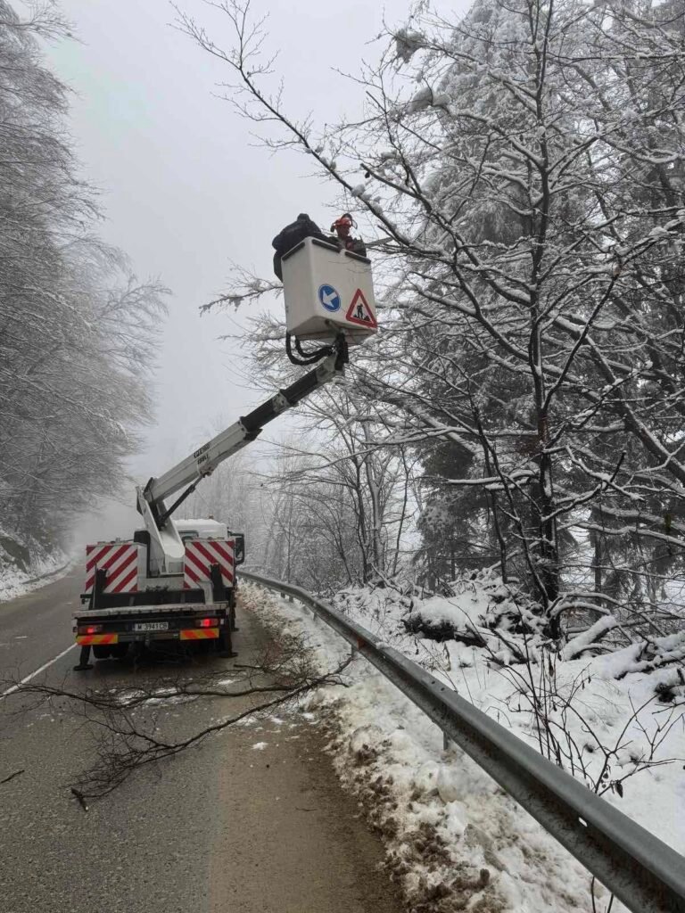 Неблагоприятните климатични условия не попречиха екипите да обследват внимателно състоянието на дърветата и да се предприемат необходимите мерки за осигуряване на безопасна пътна обстановка в Прохода.