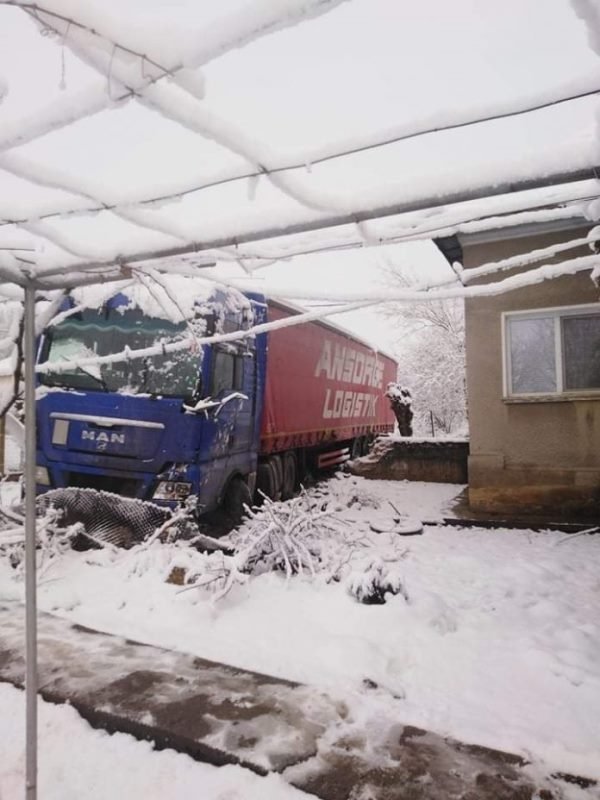 Шофьорът на ТИР не е успял да се справи със зимните условия и е катастрофирал. Инцидентът е станал в козлодуйското село Гложене, вчера, около 17.30 часа. ТИР-ът се е движел в посока Бутан. Според очевидци водачът е карал с несъобразена скорост и е изгубил управление. Тежкотоварната машина е нахлула в частен двор и е спряла само на метър от къщата на Георги Лалов.