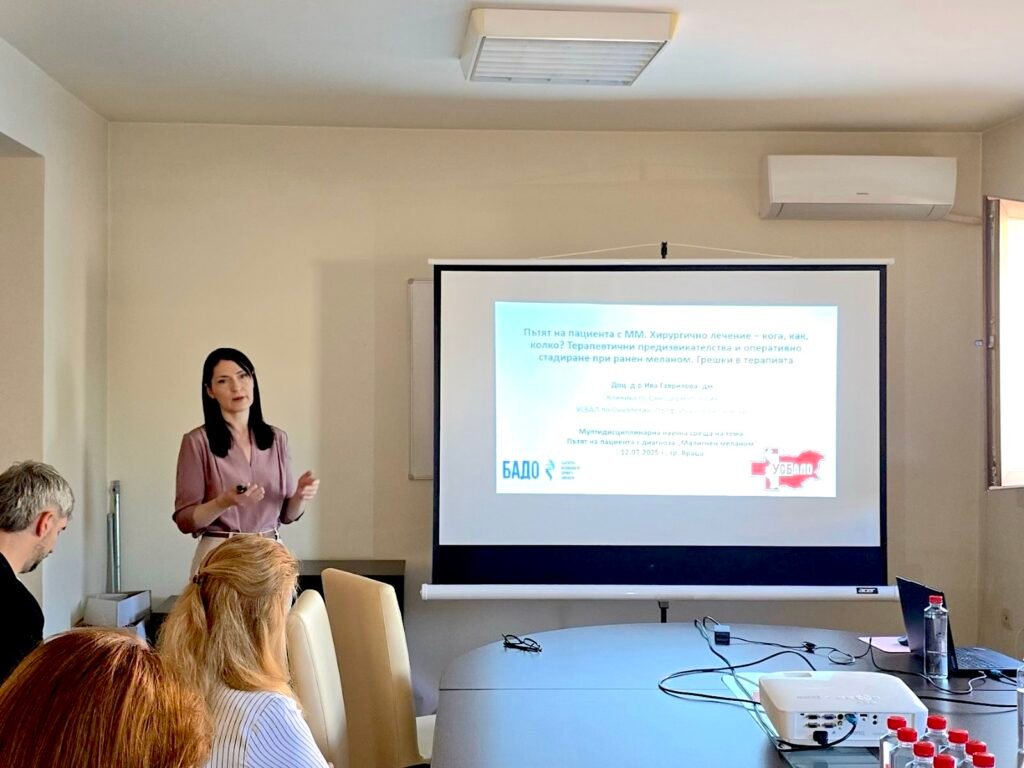Доц. д-р Гаврилова, секретар и член на Управителния съвет на Българската асоциация по дерматоонкология (БАДО), постави фокус върху проблемите при ранната диагностика и точното стадиране на меланома – все още сериозно предизвикателство в клиничната практика.
