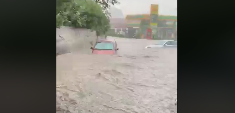 Силен дъжд, продължил около час и половина вчера, буквално наводни Червен бряг. Водната стихия превърна улици в реки и потопи автомобили.