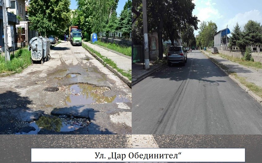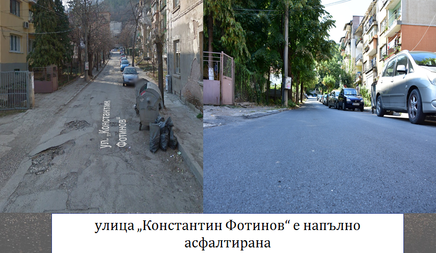 „За по-малко от два месеца напълно преобразихме облика на пътната инфраструктура около Кооперативния пазар. Обновени са улиците „Димитър Йоцов“ „Константин Фотинов“ и „Васил Априлов“.
