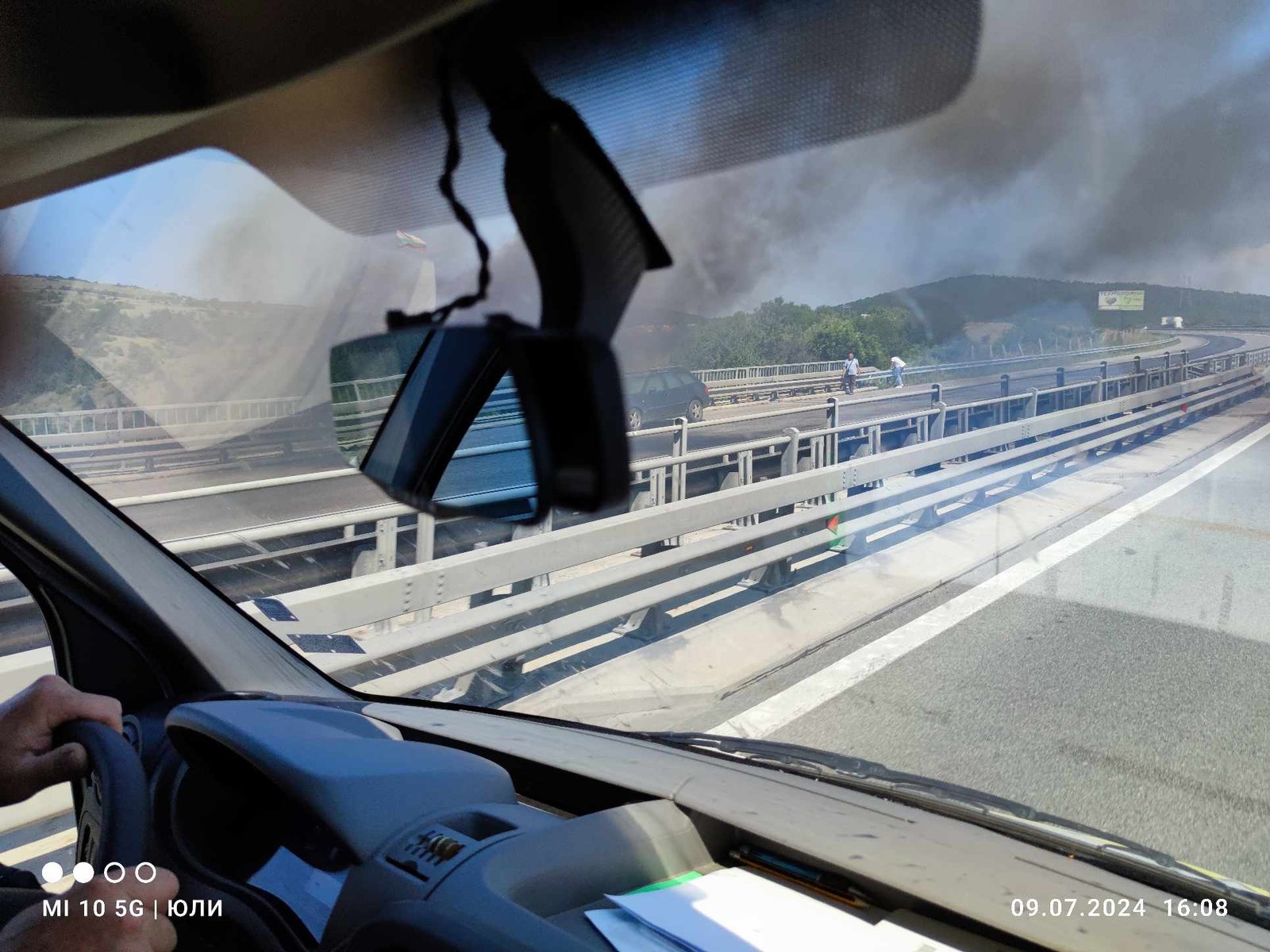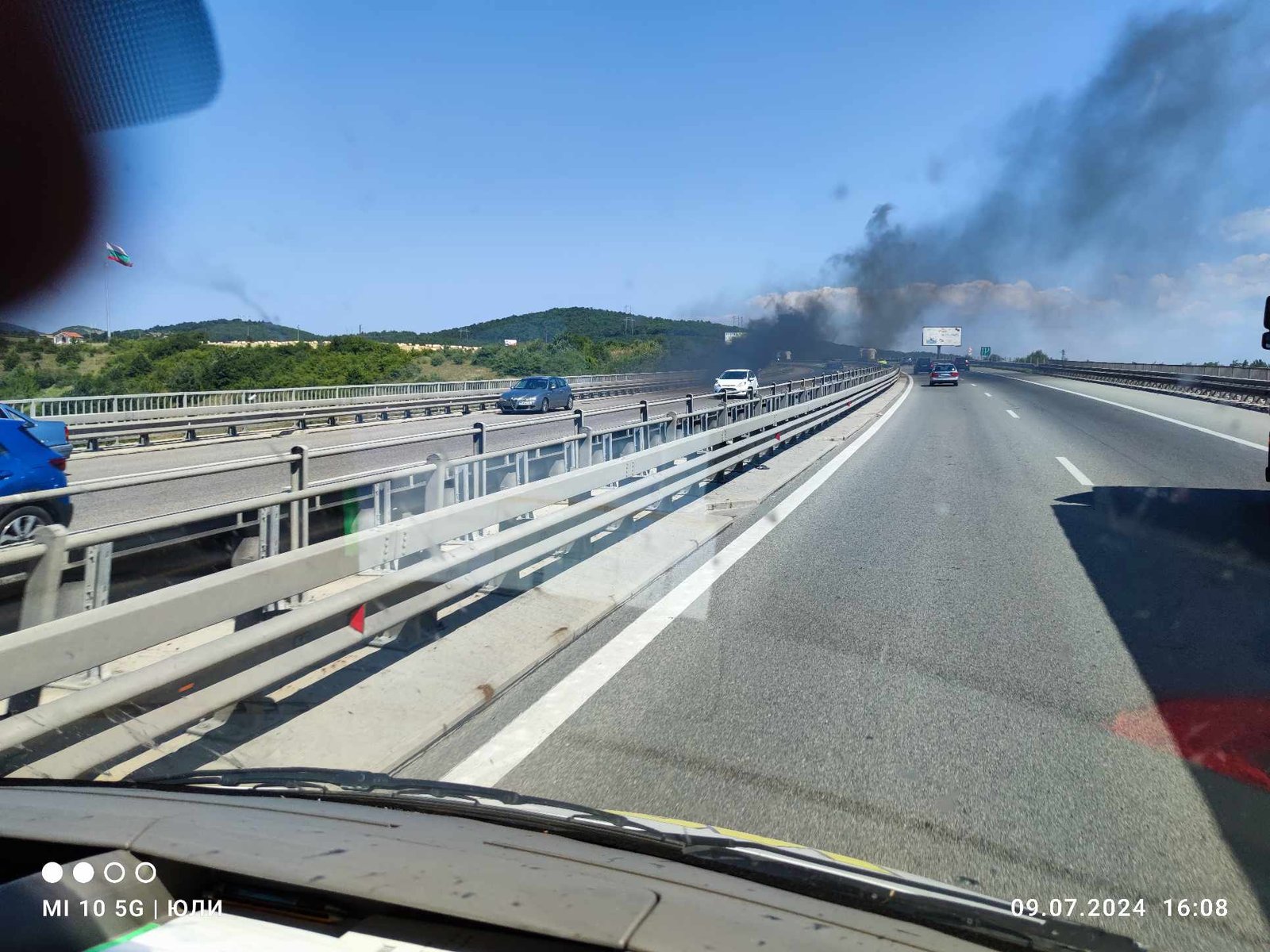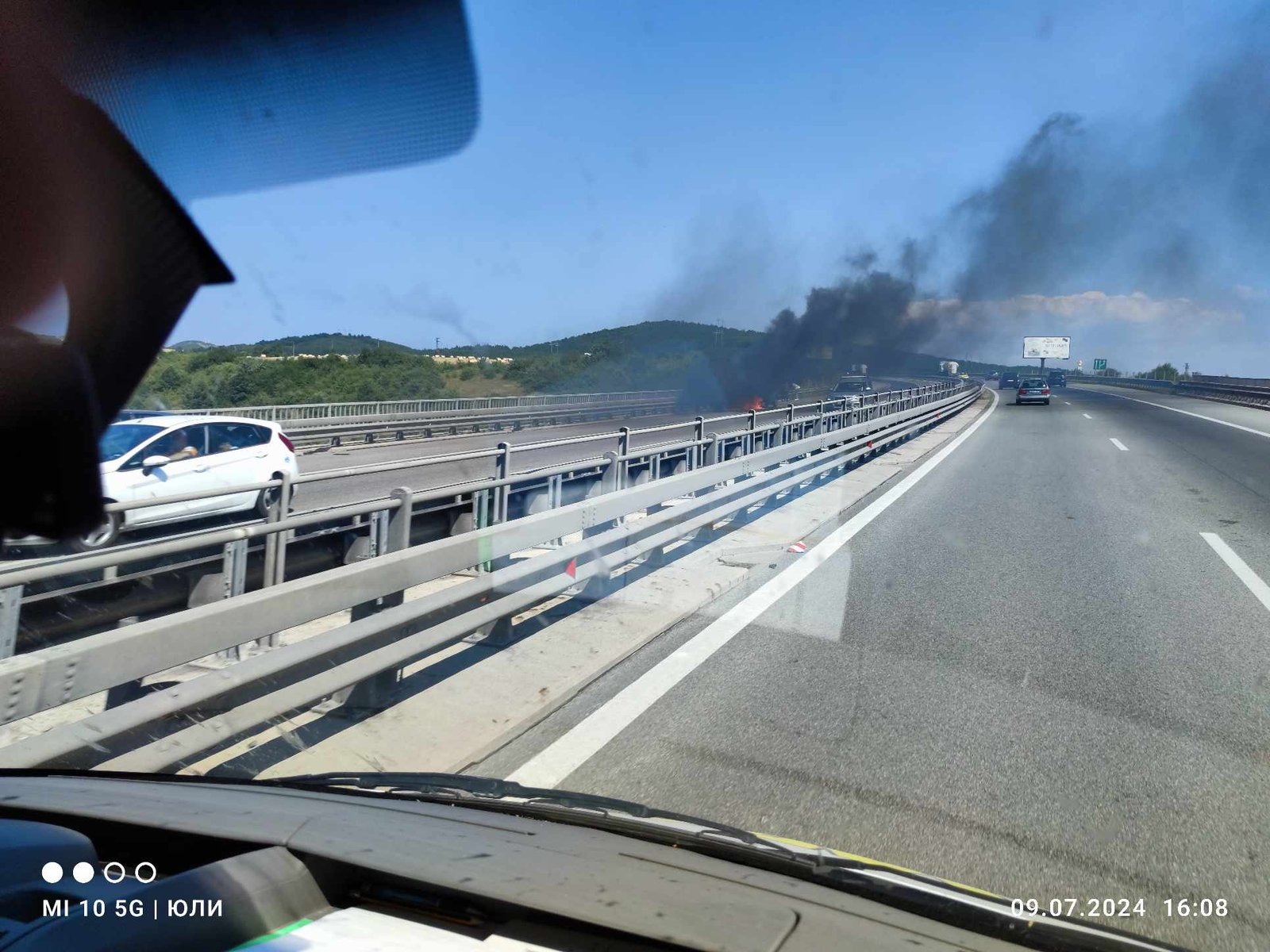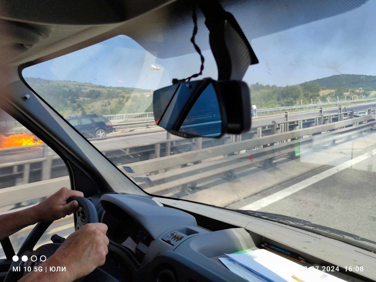 Запален автомобил затруднява трафика при село Елешница в посока София.