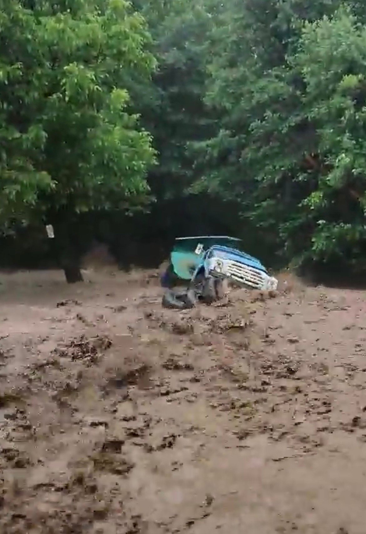 Наши читатели ни изпратиха видео, в което ясно се вижда как тежкотоварен камион буквално потъва в бурните води на прииждащата река.