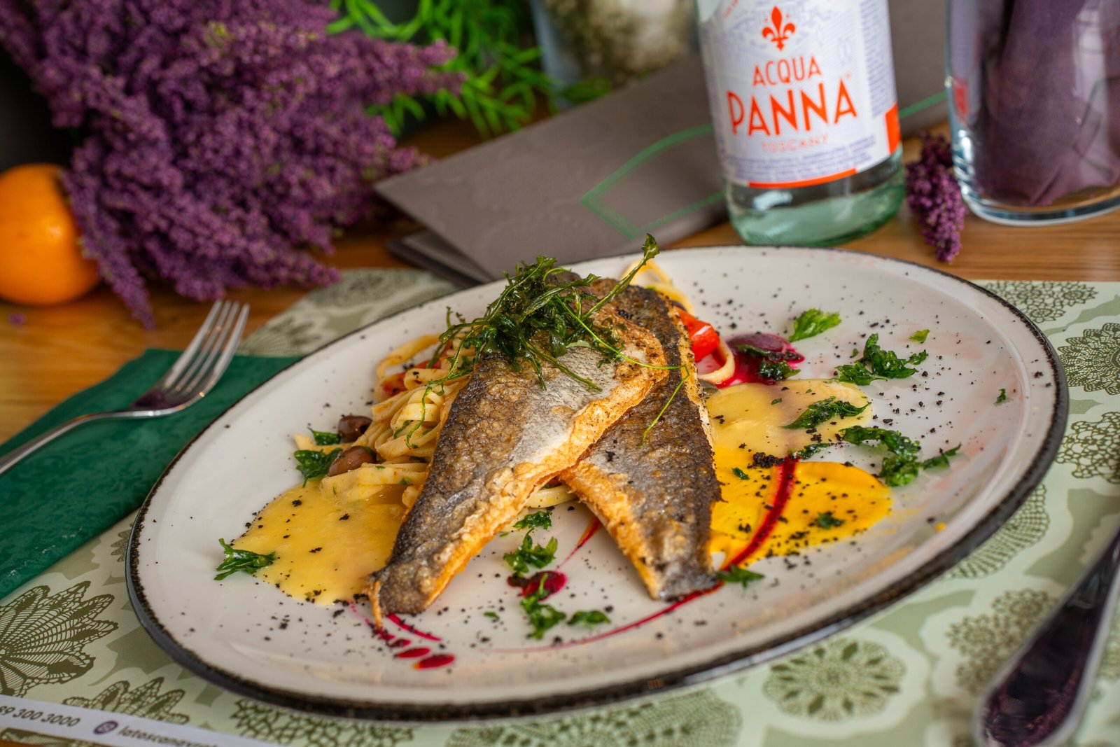 Ако сте почитатели на рибата, не пропускайте стека от сьомга върху гриловани зеленчуци и сос Холандез, филето от лаврак ала Тоскана с пикантна паста или стека от риба тон в маково семе, поднесен с картофено пюре със спанак и конфи от чери домати – избор, който съчетава елегантност и хранителна стойност.