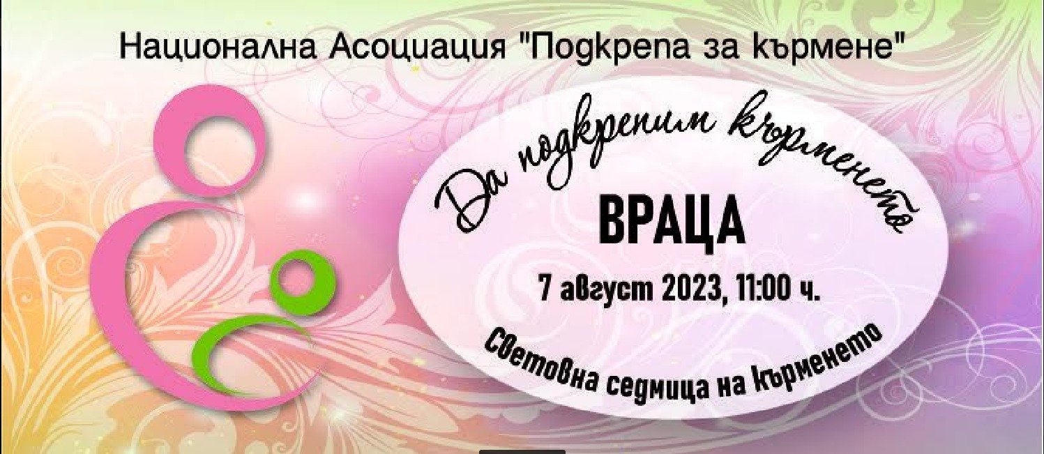 На нея ще бъдат обсъдени въпроси и страхове свързани с кърменето, преодоляване на трудностите, кърменето на порасналото бебе, захранването и отбиването. Идеята на събитието е бъдещите и настоящи майки да намерят отговори и подкрепа от доброволните консултанти по кърмене във Враца. Срещата е насрочена за 7 август в РБ „Христо Ботев“ от 11.00 ч.